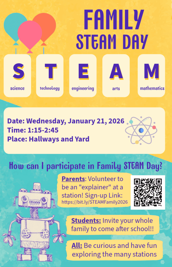 Questions? Please contact Ms. Young (gonzalesl@sfusd.edu), Kindergarten Teacher and part of STEAM Family DAY committee